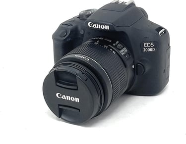 Câmera Canon EOS 2000D DSLR e lente EF-S 18-55 preta. Capture fotos e vídeos impressionantes com um desfoque de fundo incrível usando lentes DSLR versáteis. O kit EOS 2000D oferece tudo o que você precisa!